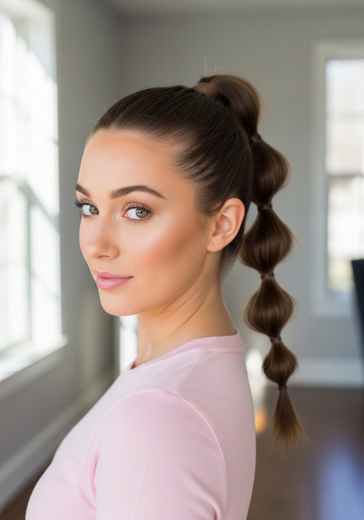 I like the bubble ponytail when I want something fun but still controlled. The sections keep my hair from moving too much, which helps during running drills.