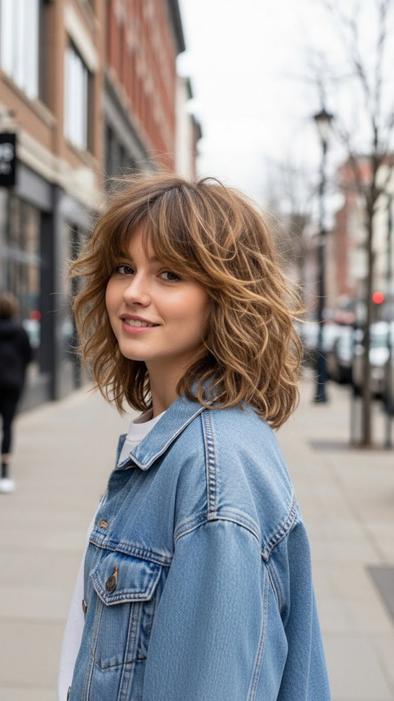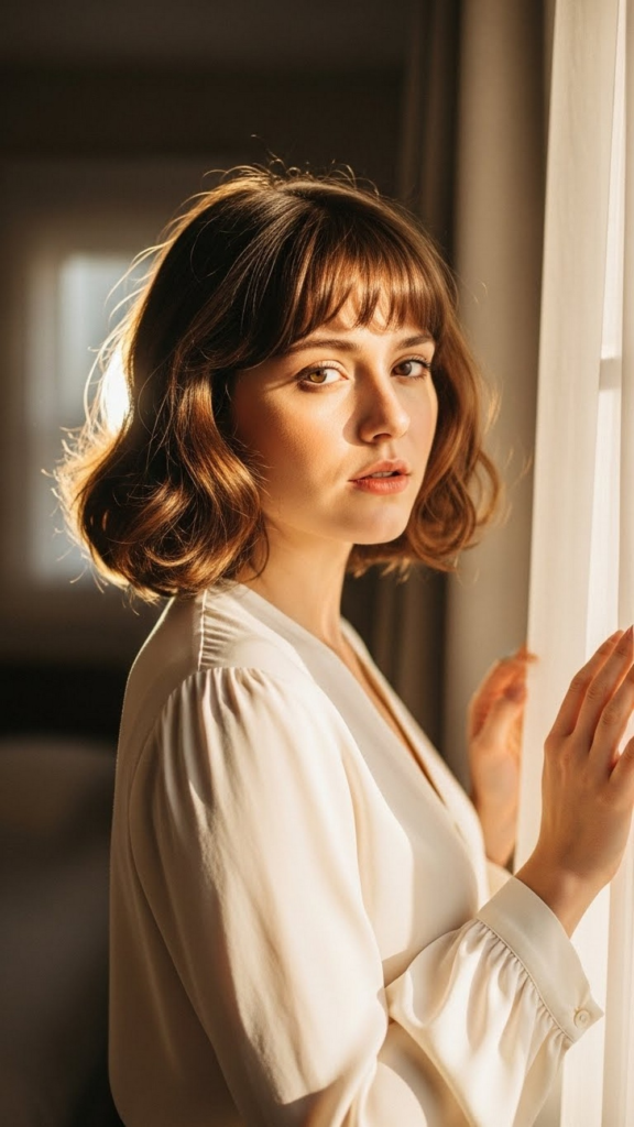 I like this style because it adds bangs without making the hair feel heavy. The fringe sits lightly on the forehead and blends into the layers. It’s a good option if you want to highlight your eyes. I usually keep the bangs a bit wispy so they’re easier to manage. This cut feels fresh and youthful without being too bold.