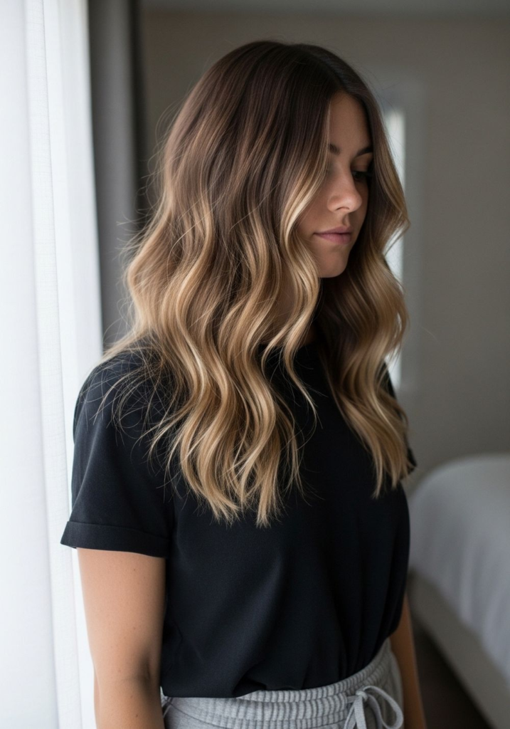 I find this ideal when I want low maintenance but still want lighter ends. The darker roots blend into softer lengths, making regrowth less noticeable. It also adds depth at the crown.