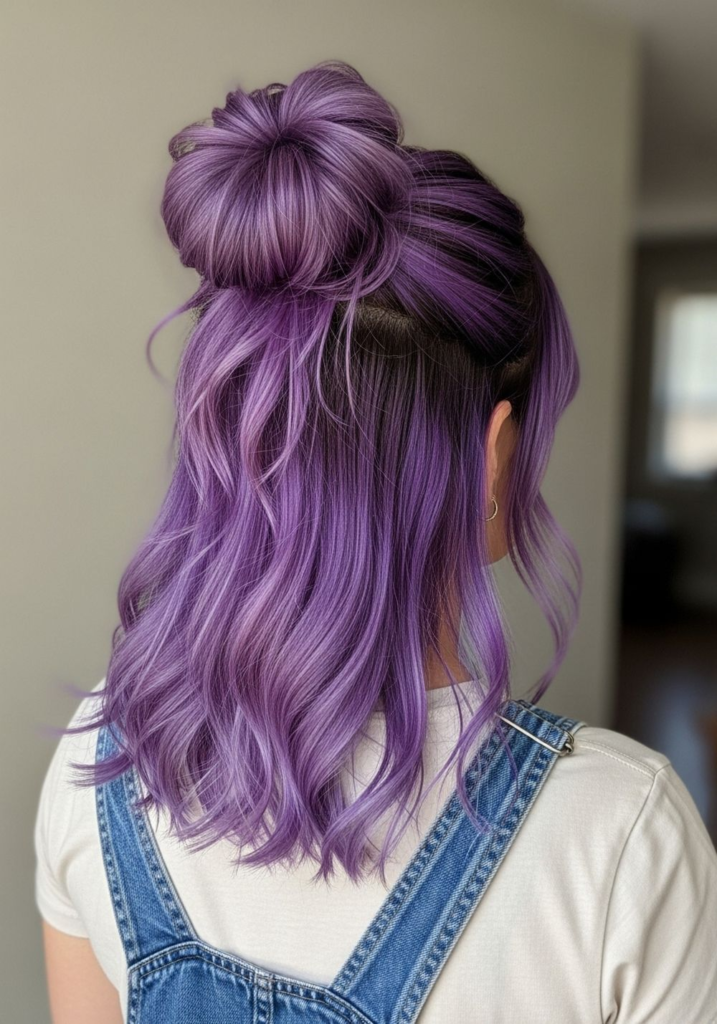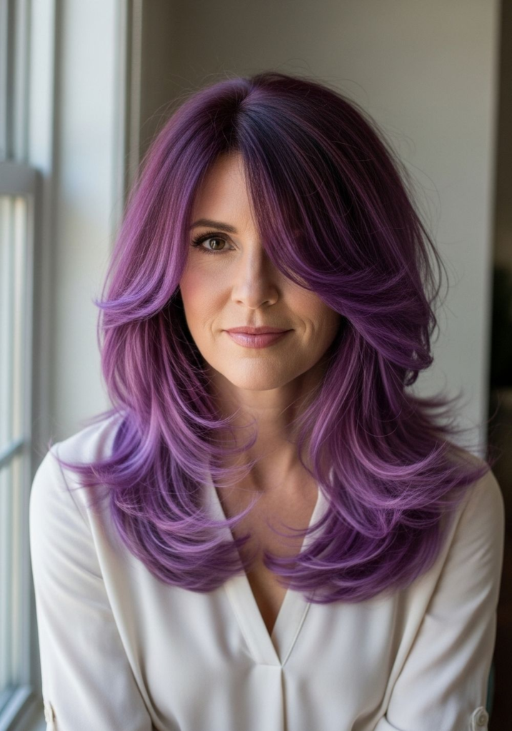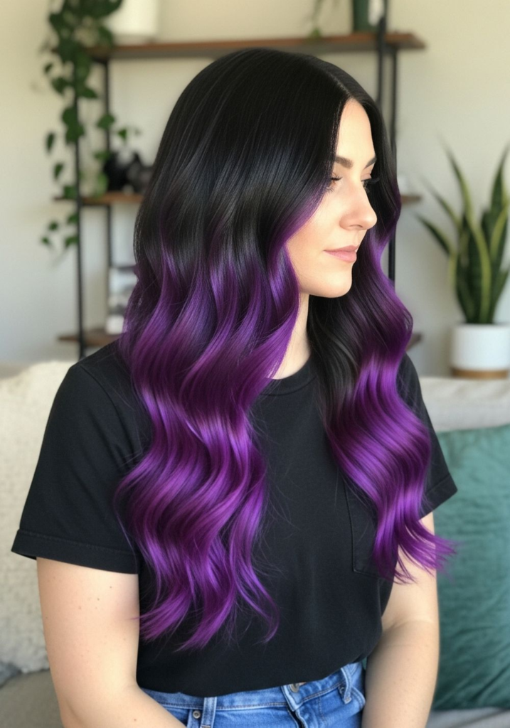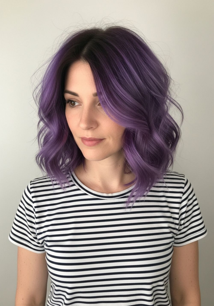 This is one of the easiest violet looks to maintain because the dark base hides regrowth. I’ve seen this work especially well for people who don’t want frequent salon visits.
