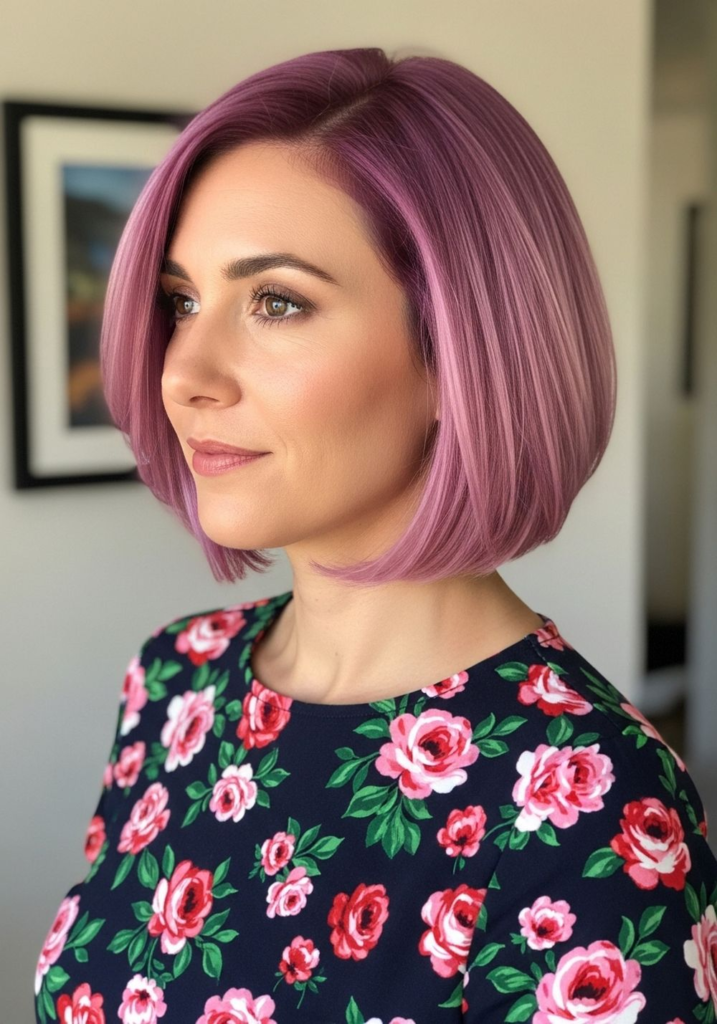 I like how this combines soft pink and violet tones, especially on shorter hair. It adds dimension without needing long layers.