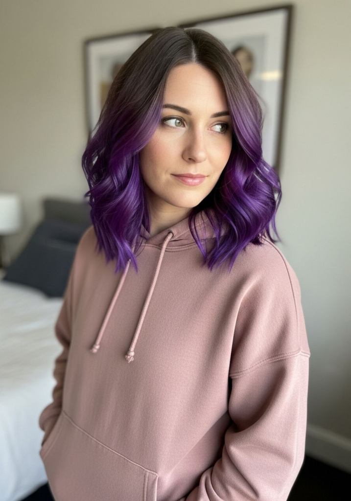 From my experience, violet gradient hair works because it gives flexibility. You can keep it soft and natural or go bold depending on placement and tone.