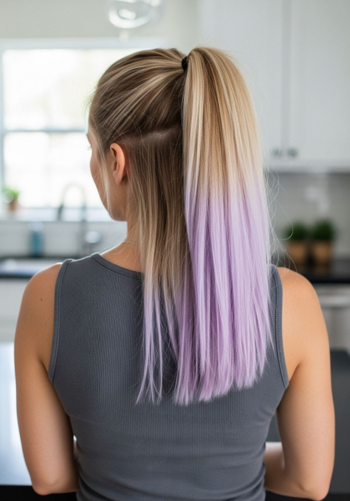 This is one of the easiest ways to try violet without commitment. Only the ends are colored, so you can trim it off anytime.