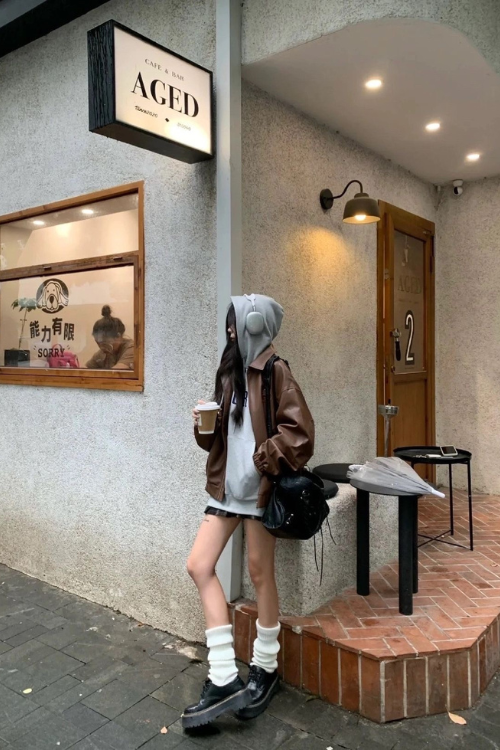 This look combines an oversized hoodie with a pleated skirt, high socks, and sneakers for a youthful vibe. Choosing fun colors or graphics on the hoodie helps capture that playful school-style energy.