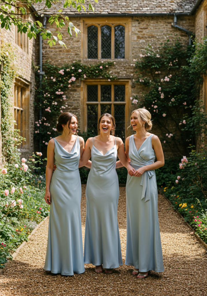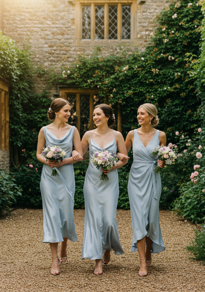 The satin slip dress offers clean lines and modern simplicity. Its versatility makes it wearable beyond the wedding day, appealing to bridesmaids who value longevity and ease.