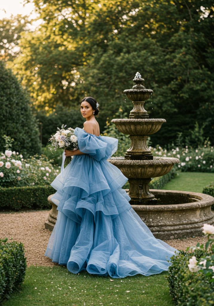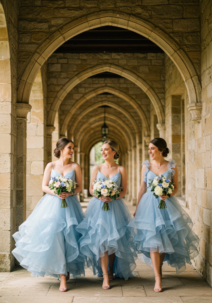 Bluebell blue has emerged as a refined and romantic wedding color that sits between soft lavender and muted periwinkle. It offers a fresh alternative to typical pastels and works beautifully across different dress styles, fabrics, and wedding themes. These fifteen bridesmaid looks show how versatile and intentional this shade can be, whether the style is modern, classic, or romantic.