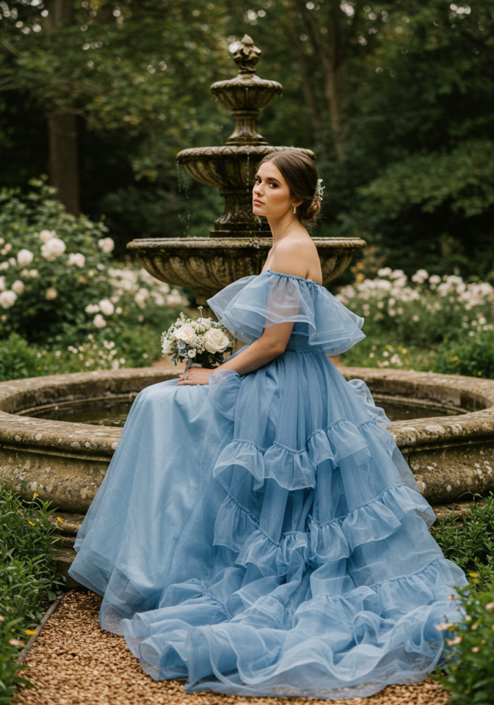Organza ruffles add volume without heaviness, making them ideal for bridesmaids who want drama with refinement. The texture creates visual interest without overwhelming the look.