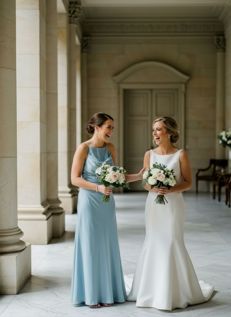 Pre-ceremony moments often hold the most emotion. A refined bridesmaid look elevates these candid memories, turning simple interactions into meaningful keepsakes.