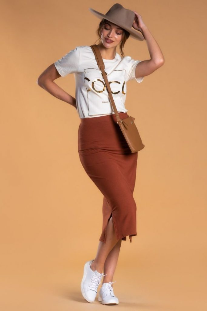 The key is balance—mixing casual sneakers with the right skirt style, colors, and fit. Once you get that right, creating outfits becomes much easier.