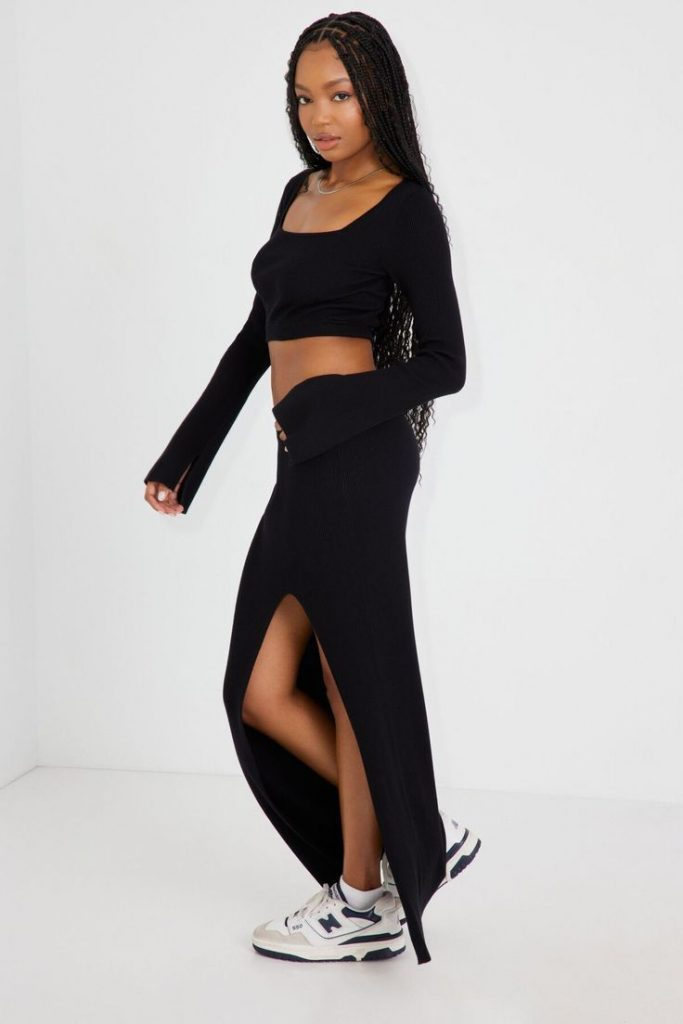 9. Monochromatic Muse: Black Skirt and Sneakers