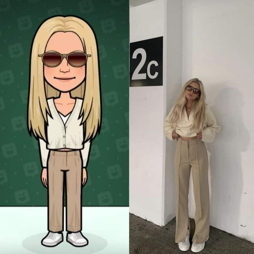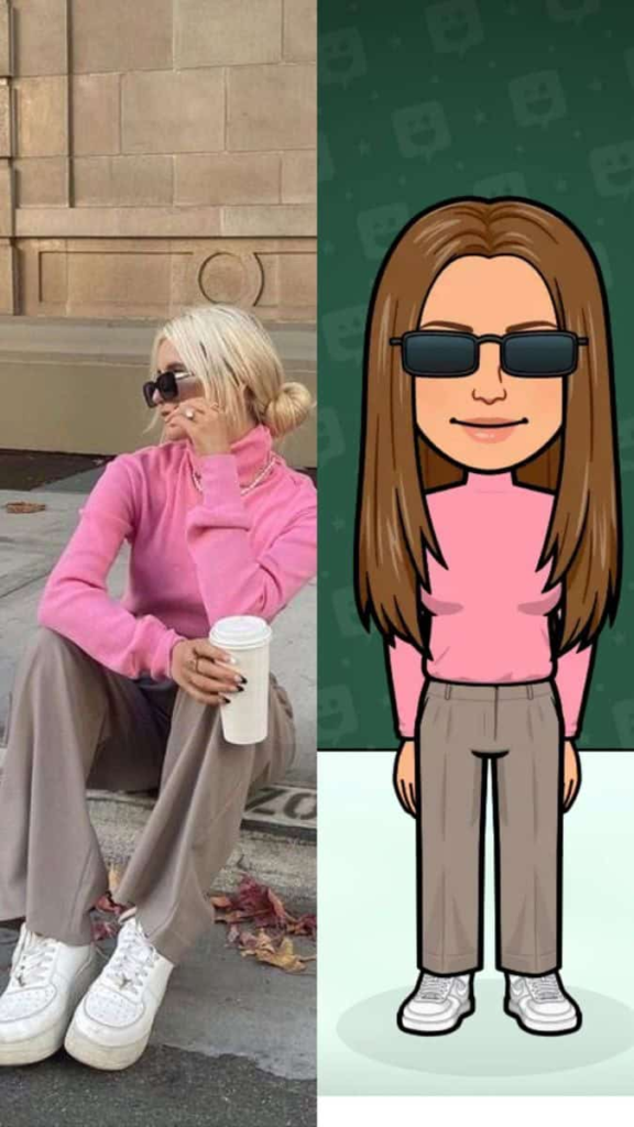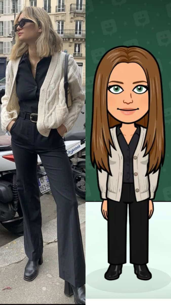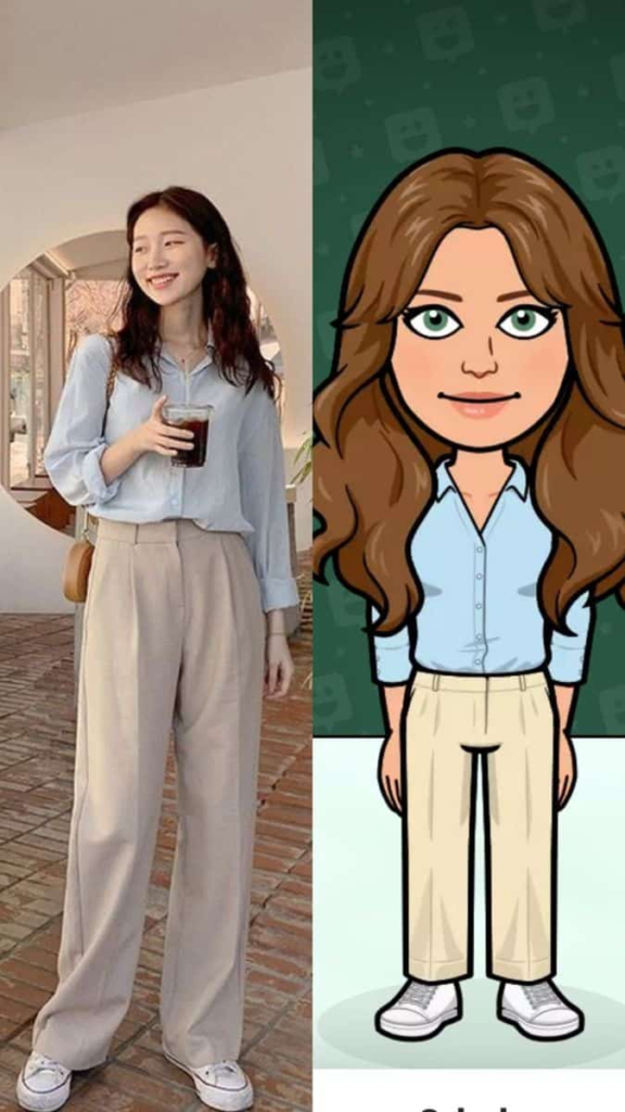 This is a clean and easy outfit when I don’t want to overthink styling. A blouse with relaxed pants looks simple but still polished. I’ve noticed these kinds of outfits work well for digital settings like Bitmoji because they don’t look cluttered. Keep it minimal for best results.