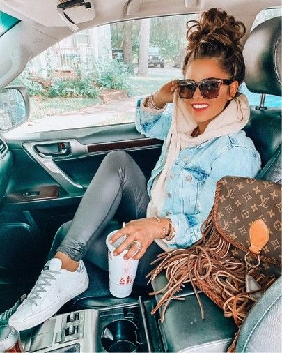 This look centers on simple winter staples layered for warmth. Leggings and winter boots keep it practical, while the oversized denim jacket adds a relaxed and playful touch.