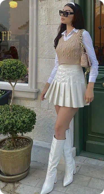 This look feels more styled but still wearable. I start with basic layers and then add boots to make the outfit stand out.