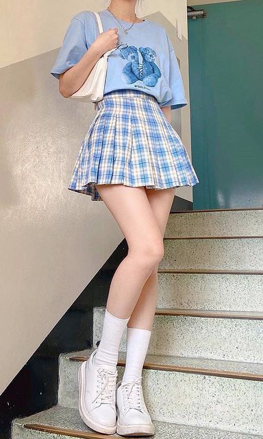 This is one of my go-to casual looks. A relaxed sweatshirt keeps me comfortable, especially during long classes. The plaid skirt adds that preppy touch without making it look too dressed up.