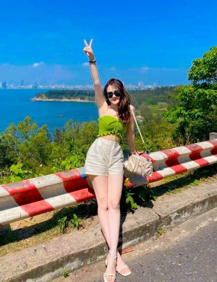 Lime green ruched crop tops paired with cream linen shorts offer subtle resort vibes. White slides and dark sunglasses complete a casual yet photogenic ensemble.