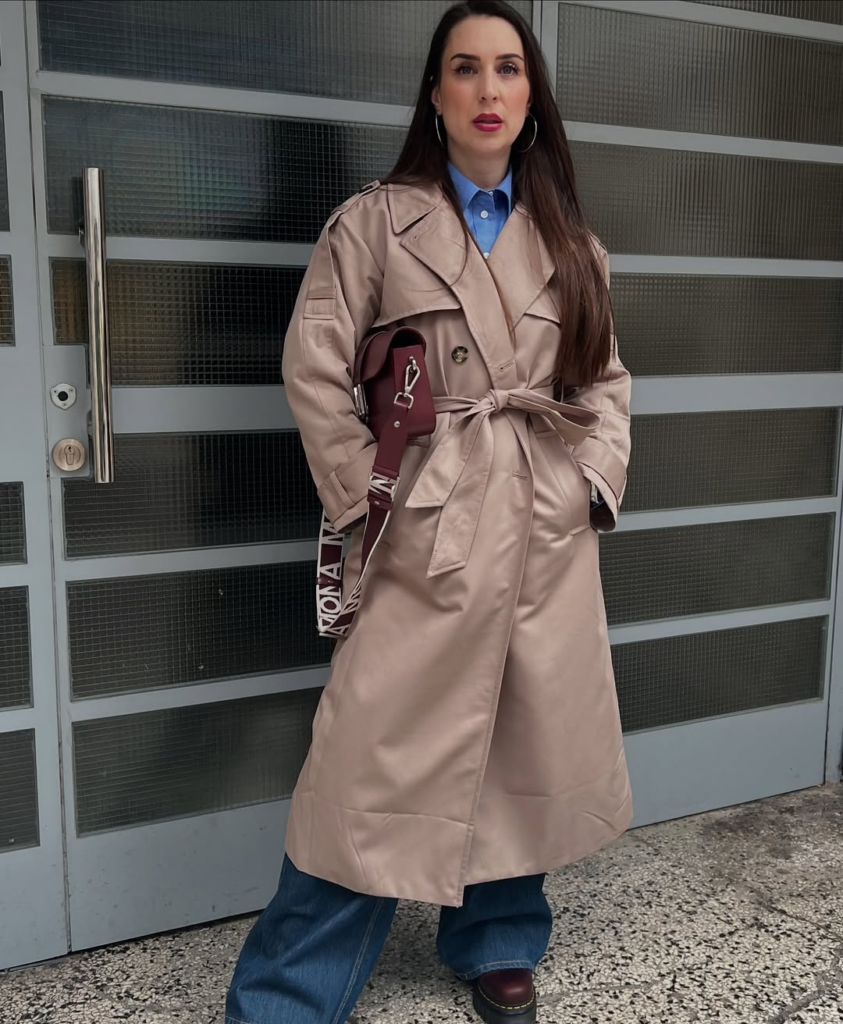 Layering denim under a trench creates a comfortable yet elevated look for cold mornings. This outfit is practical for workdays while still feeling relaxed and modern.