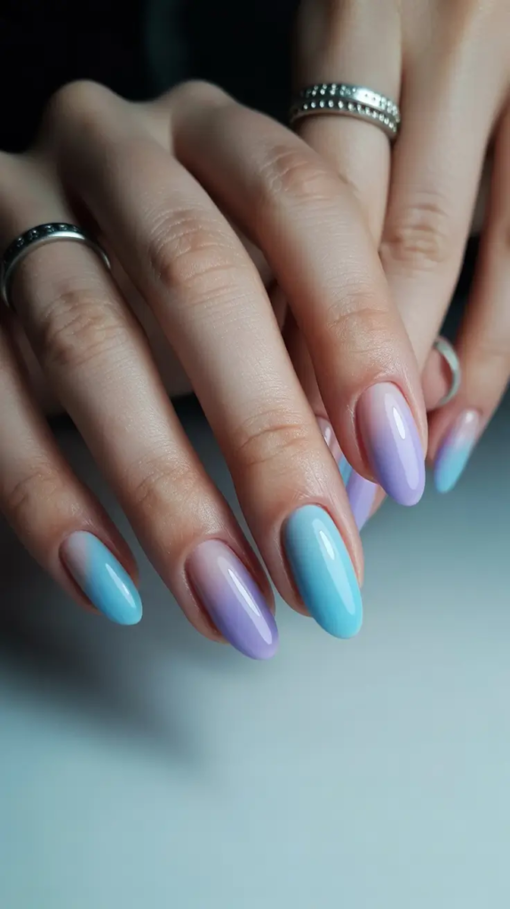Pastel blue and lavender blend together in a smooth gradient that feels light and uplifting. The soft tones complement pale skin and create a dreamy appearance.