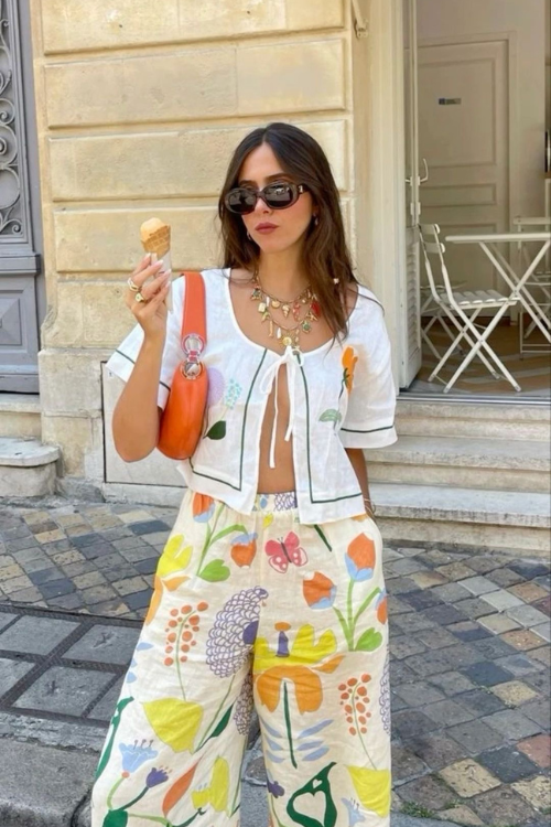 A linen matching set is one of the easiest outfits to pack for a tropical trip. The breathable fabric keeps you cool, while matching prints make the outfit look put together without much effort. Tropical patterns or bold colors work especially well in sunny destinations.