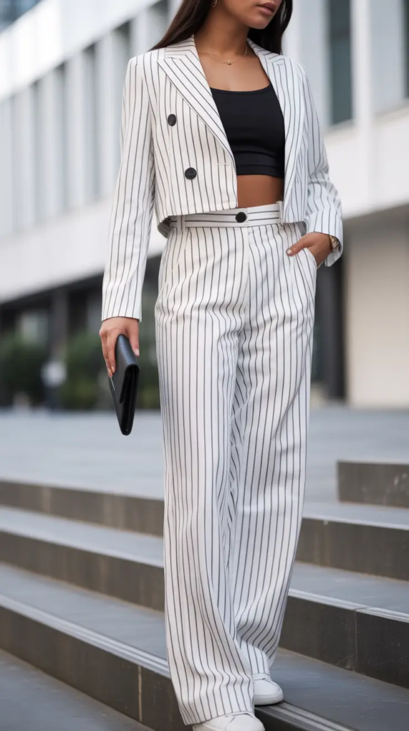 Pinstripe Power Set with a Cool-Girl Night Casual Twist
