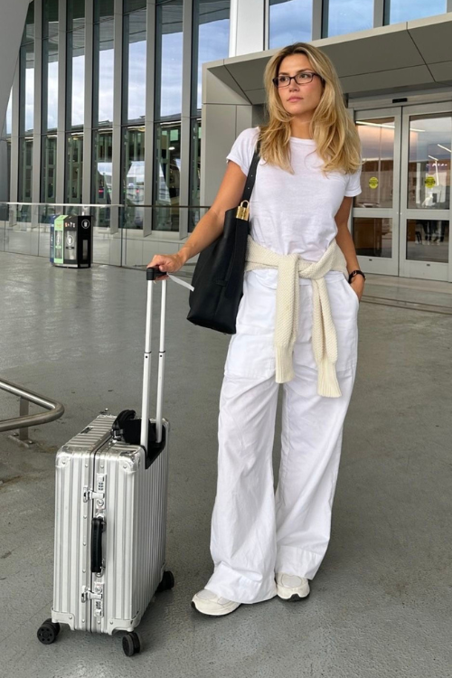 Light, breezy, and stylish, this outfit keeps you cool and comfortable for summer or tropical flights.
