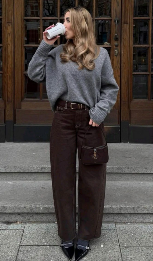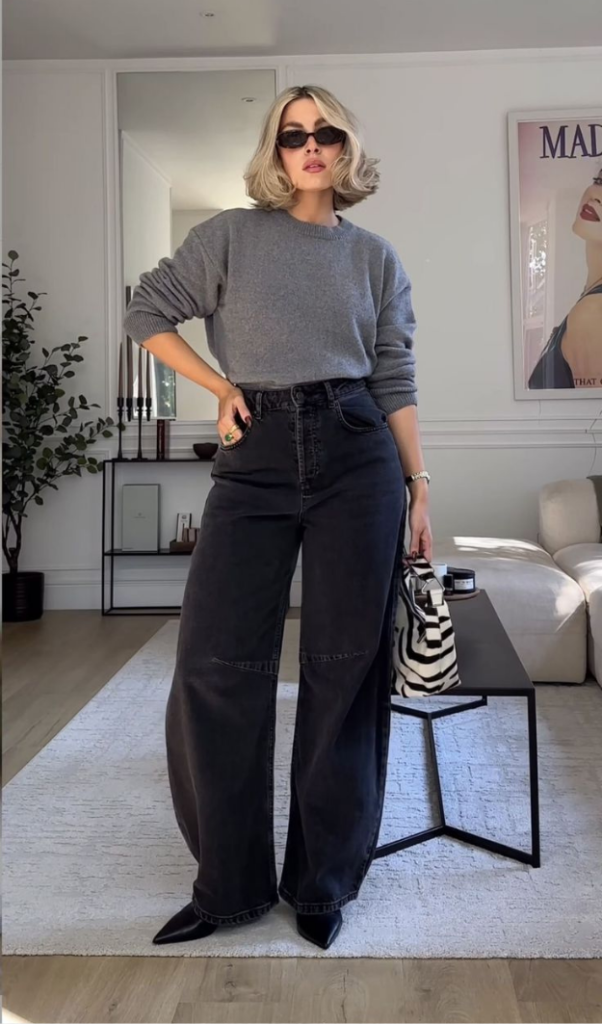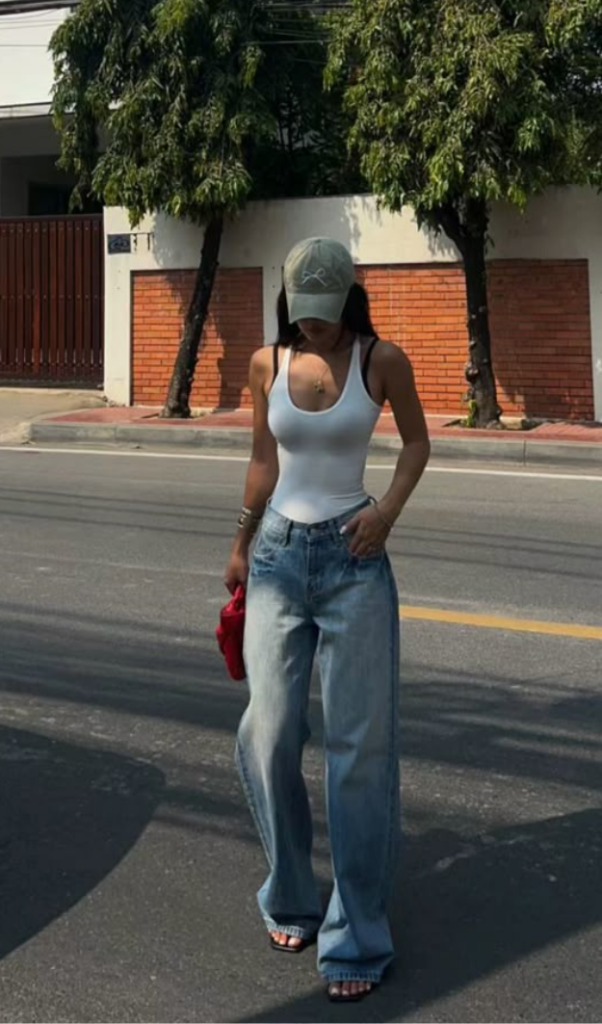 Baggy jeans remain popular, but the newer versions feel more tailored and intentional. Inspired by menswear, they sit lower and feature straight or wide legs with a confident edge. To avoid looking sloppy, balance them with fitted or structured tops. Adding a belt helps tie everything together.