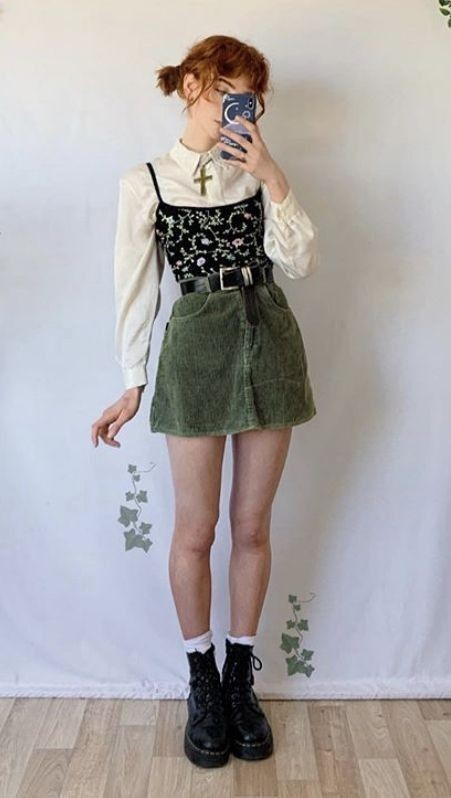 Layering a lace cami over a collared shirt gives a mix of soft and structured that I really like. Paired with a mini skirt and boots, it feels balanced without being overdone, and small details like the collar peeking out make a big difference.