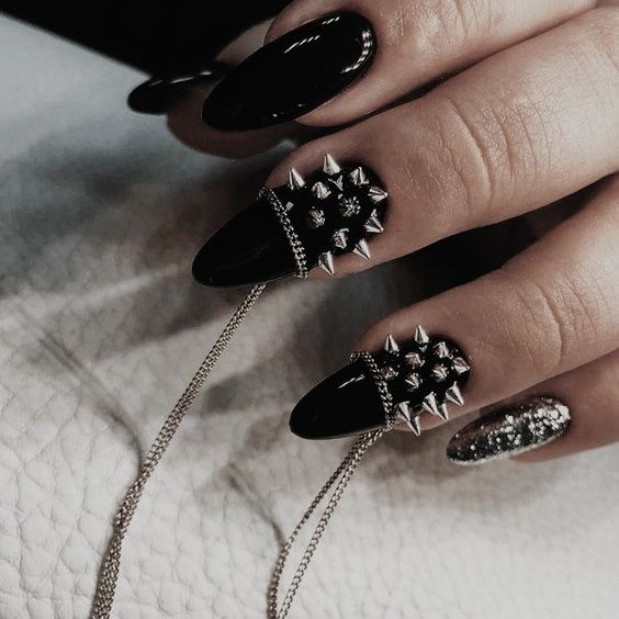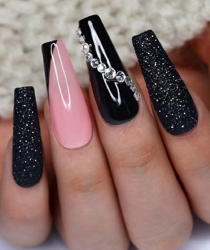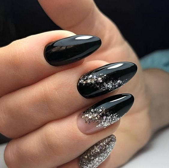 Adding glitter to black nails creates a sparkling effect, perfect for nights out or when you want a touch of glamour.