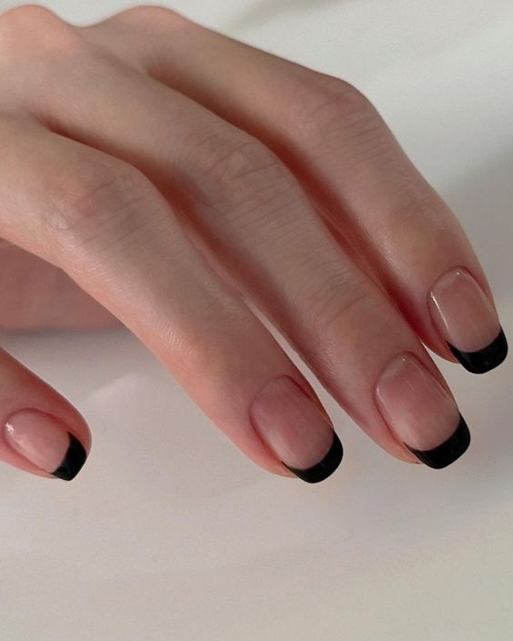 A thin coat of black polish on natural nails creates a simple yet striking look, showing that minimalism can be powerful.