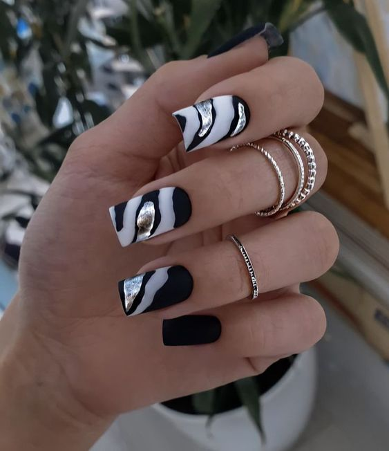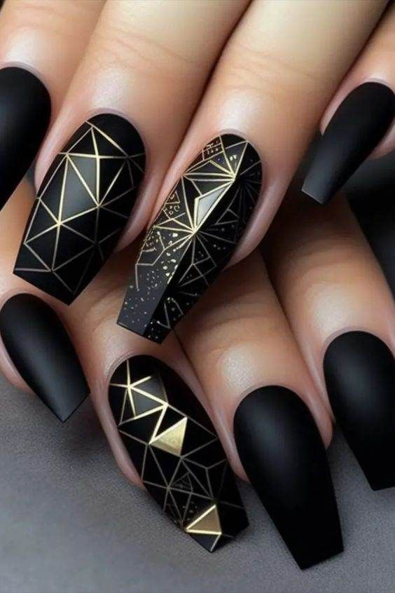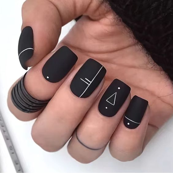Black nails serve as a perfect base for artistic expression, from abstract to geometric designs.