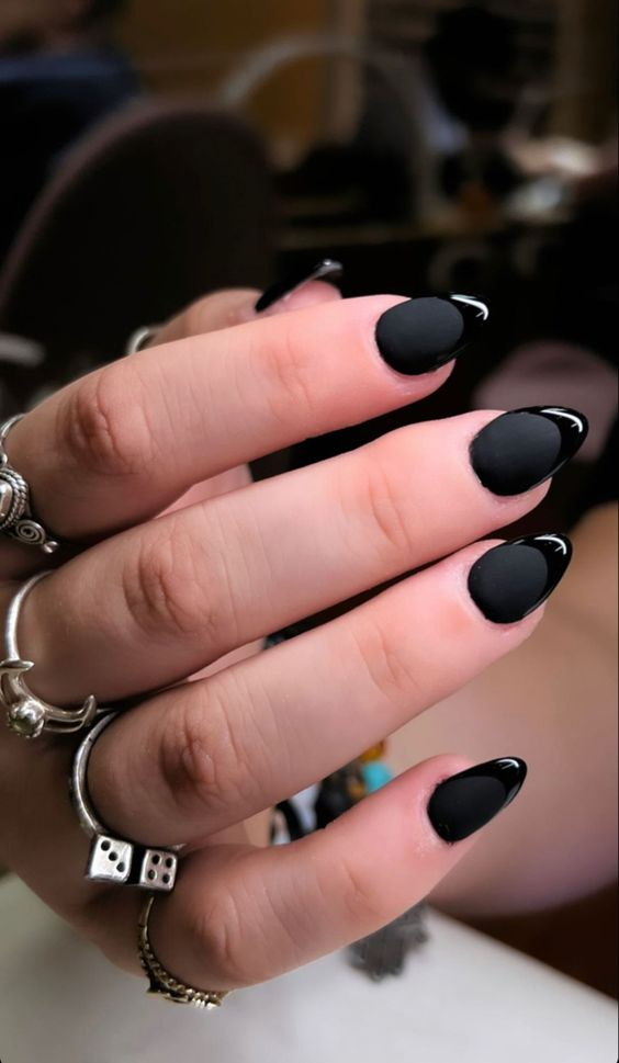 Matte black nails offer subtle sophistication, standing out without being overly flashy.