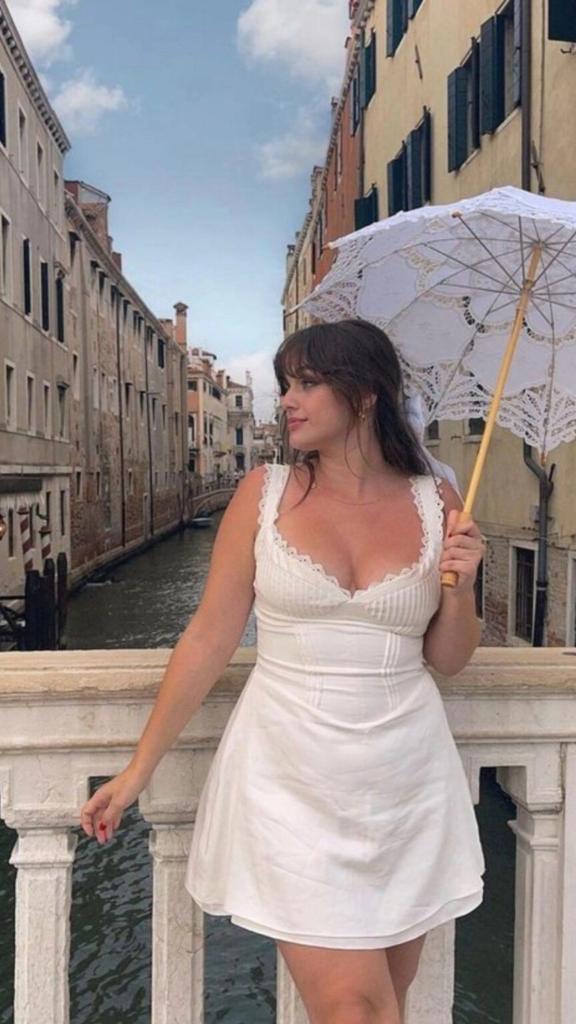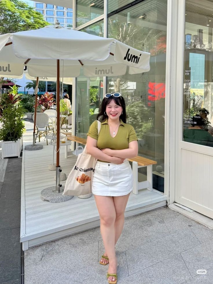 This is one of those summer outfit ideas for midsize women that feels soft and easy for slow days. The white mini dress with a subtle print keeps things light, while the shape sits nicely without feeling tight. I keep it simple with sneakers or slides so I don’t have to think twice before stepping out.