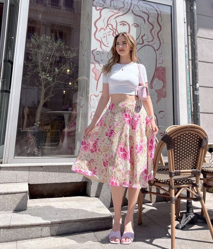 This outfit feels fun without trying too hard, which I always look for in summer outfit ideas for midsize women. A simple top with a statement skirt keeps things balanced and easy. I sometimes add a light layer if I want a bit more structure.