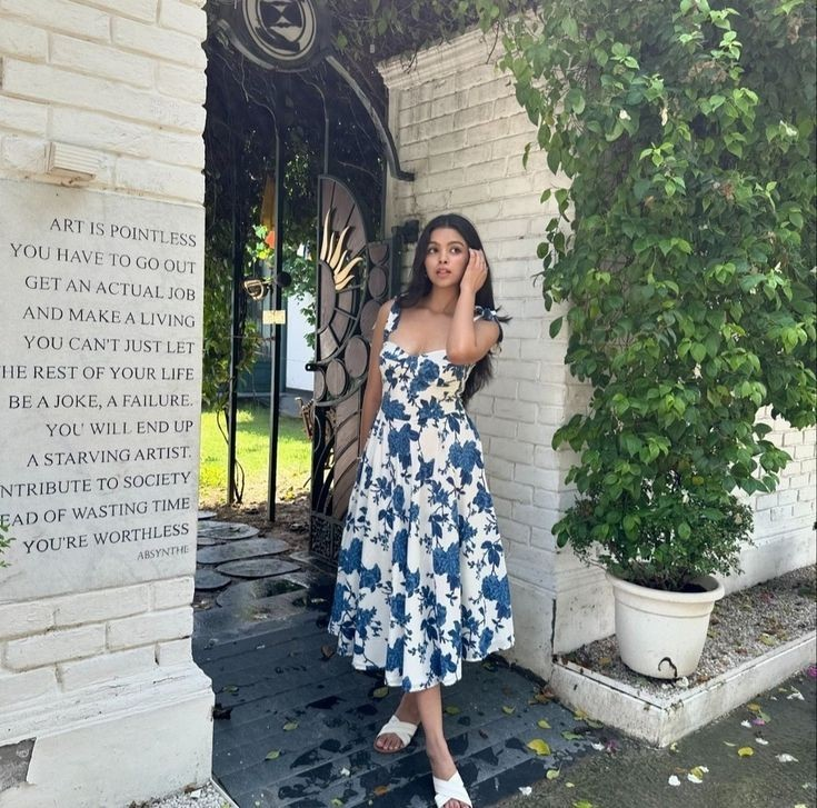 This dress gives a slightly classic feel while still working for summer. The shape creates structure, and the floral pattern keeps it soft. I like how it works with both casual and slightly dressy shoes.
