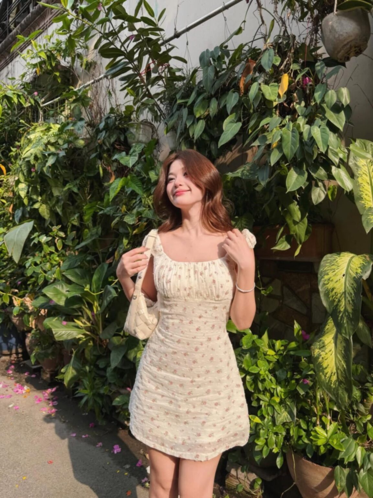I like how this ivory mini dress feels calm and polished at the same time. The flowy fit makes it perfect for hot days, while small details like socks and dark shoes add personality. It’s the kind of outfit I reach for when I want to look put-together without trying too hard.