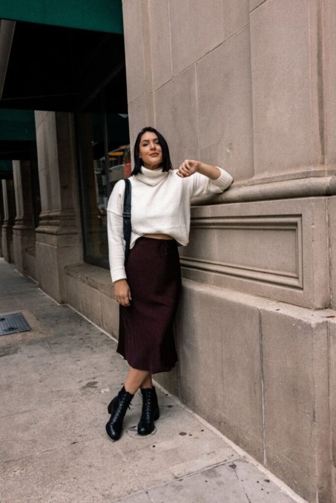 I like this for cooler days when I still want a feminine look. It’s cozy but still styled.
