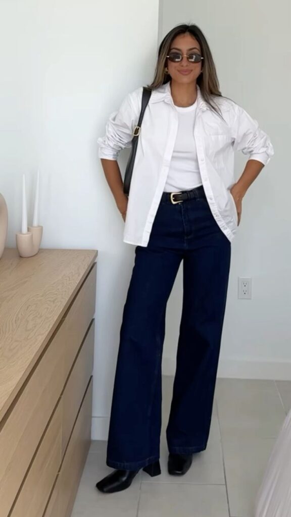 White Button-Up Shirt with Dark Wash Jeans