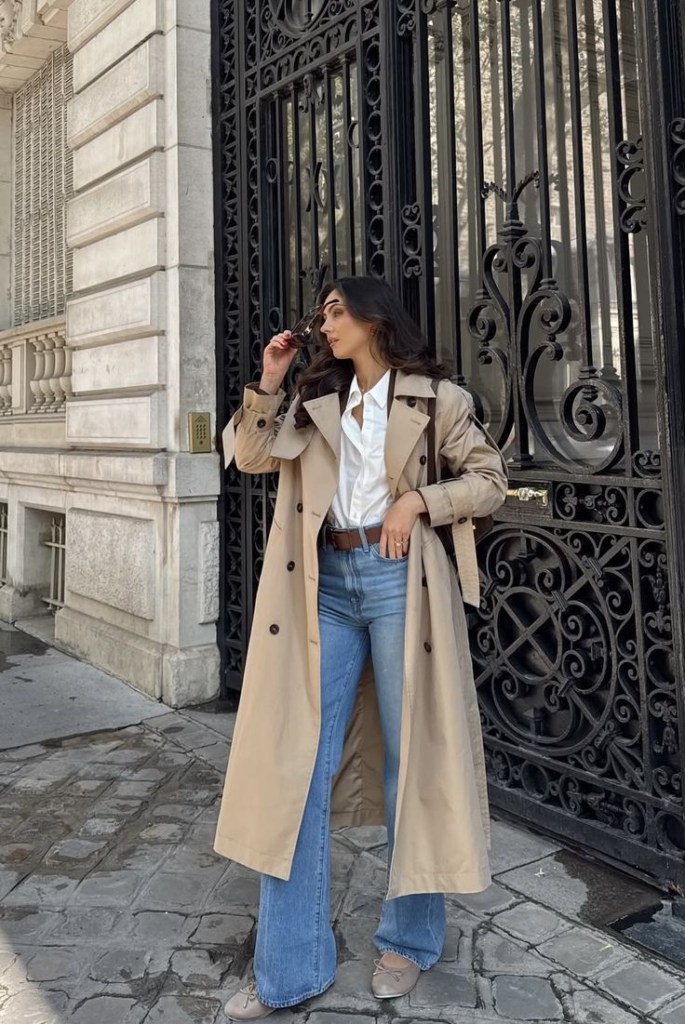 Classic Trench Coat with Casual Denim Look