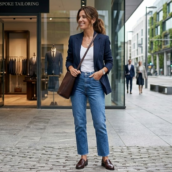 Tailored Blazer with Straight-Leg Jeans and Loafers