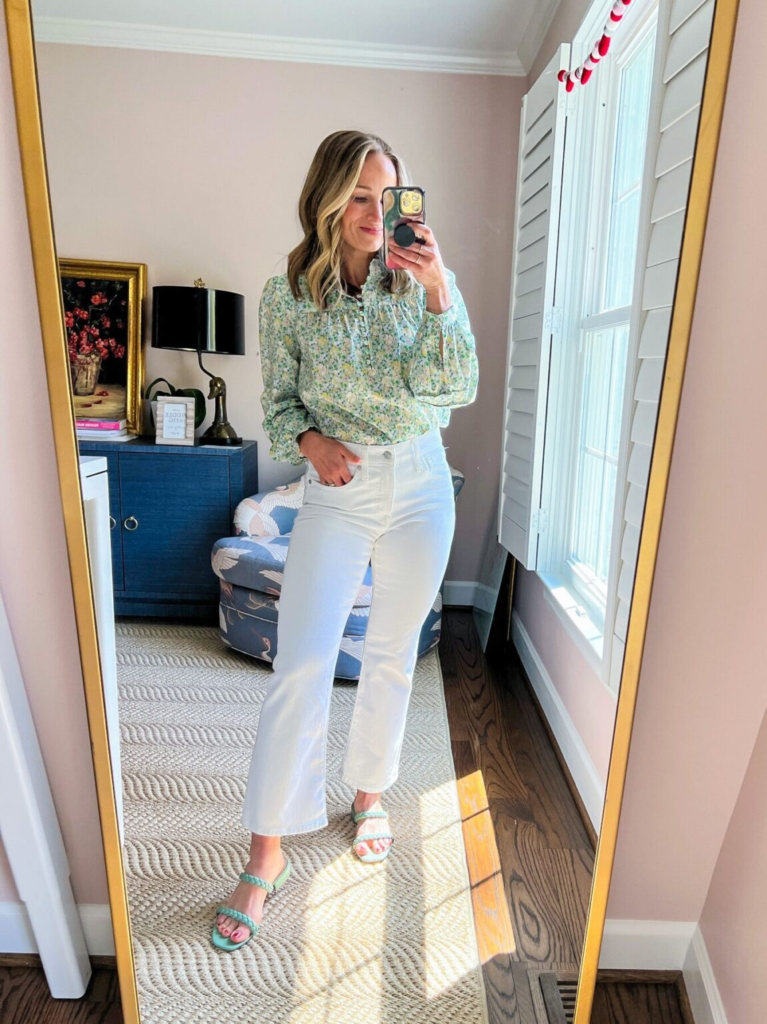 18. Floral Top & White Denim