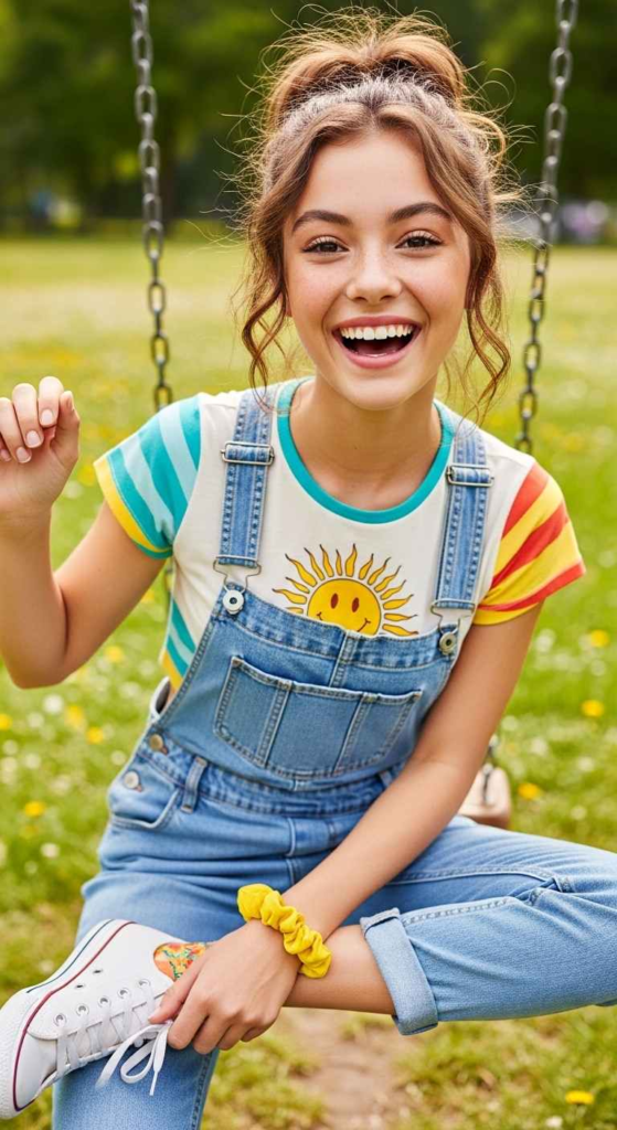Dungarees bring a playful vibe. Wearing them with a crop or tee keeps it modern.