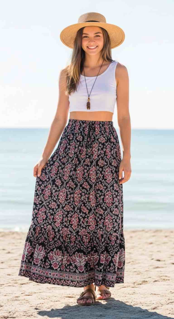 Maxi skirts feel light and flowy. They’re great for creating a soft summer look.