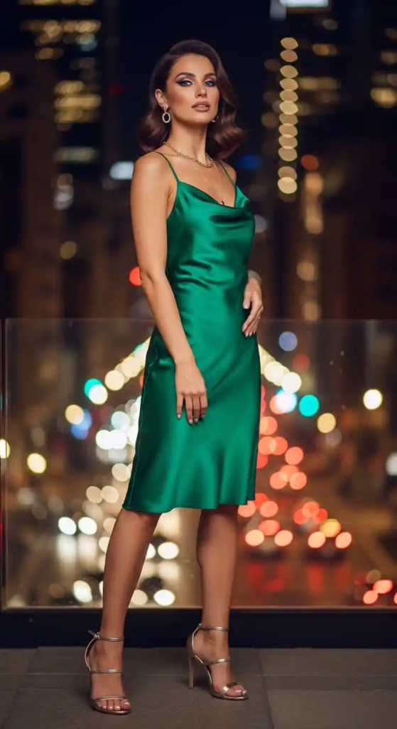 1. Satin Slip Dress with Heels