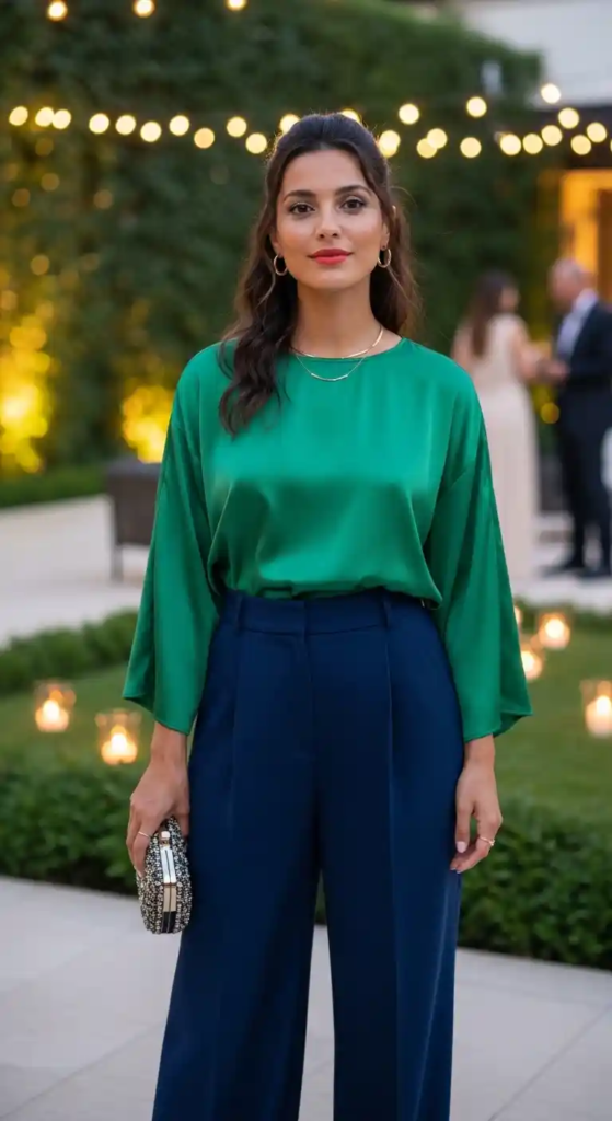 6. Satin Top + Wide-Leg Pants