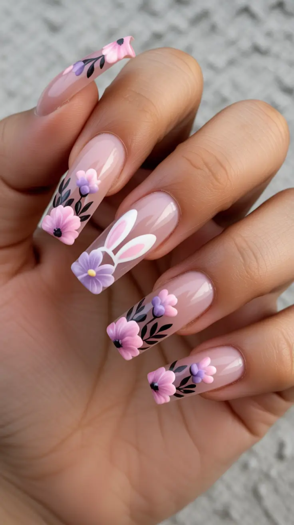 Soft Floral Bunny Garden Nails