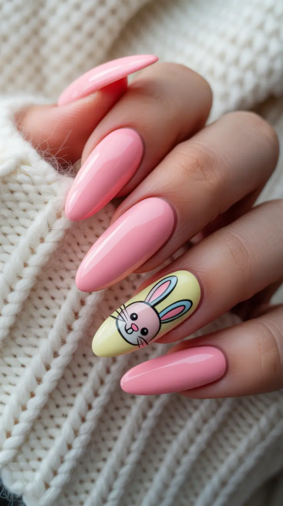 Soft Pink Bunny Accent Nails With Playful Easter Charm