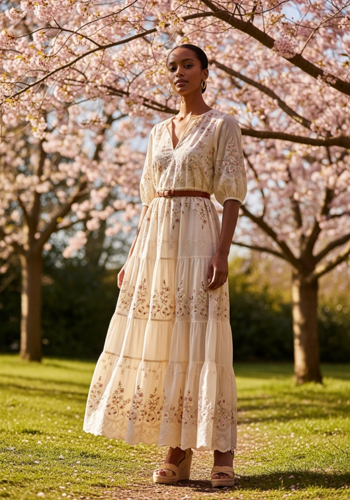 Maxi dresses are perfect when I want full coverage without feeling heavy. The layered design adds movement, which makes the outfit feel more relaxed and stylish at the same time. Floral prints or soft pastel tones work best for Easter vibes.