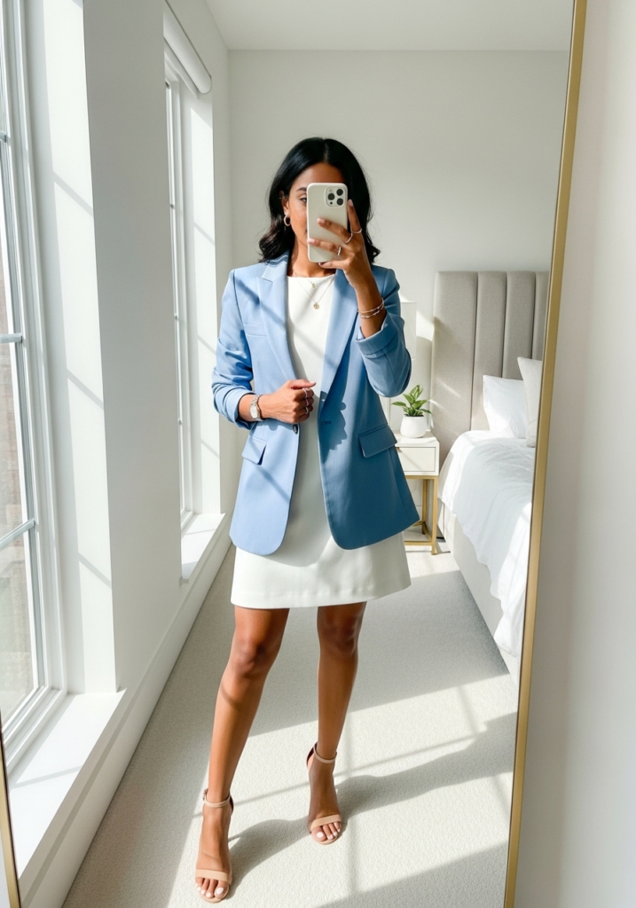 Layering a blazer over a simple dress is one of my go-to tricks. It instantly makes the outfit look more structured and put-together. Pastel blazers work especially well during Easter because they keep the look light.