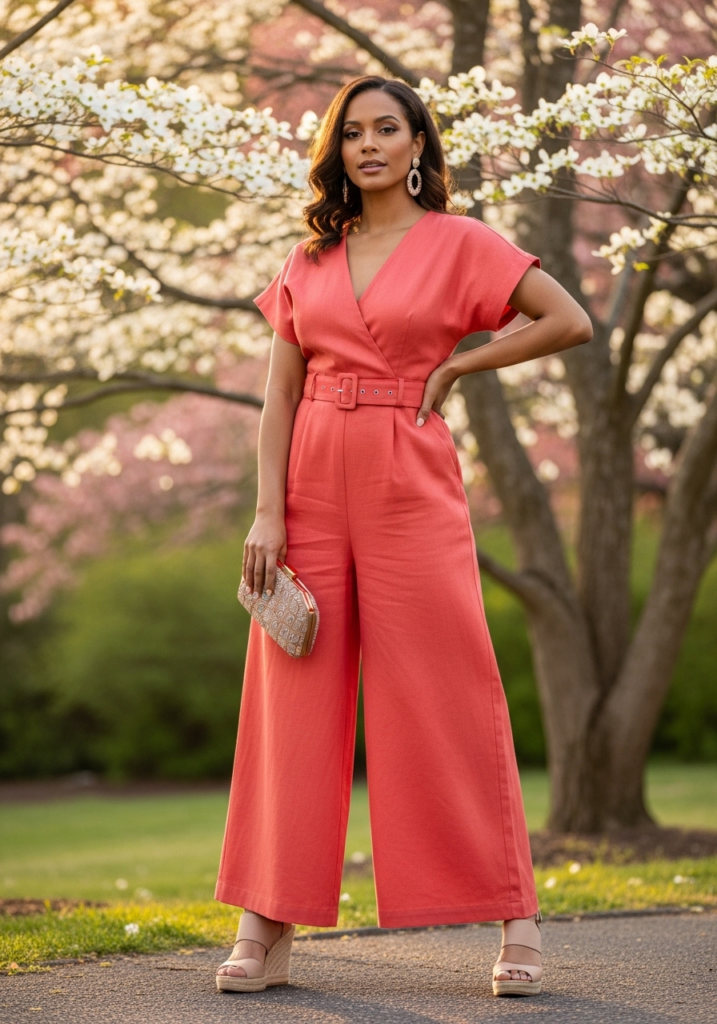 A jumpsuit is a great alternative if you don’t want to wear a dress. I’ve tried this myself, and it can feel even more comfortable than traditional outfits. Choosing a tailored fit with wide legs keeps the look elegant.
