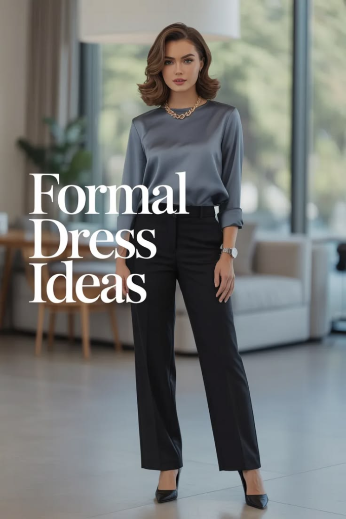 This outfit brings comfort into formal dressing without losing refinement. The modern top keeps the look fresh, while tailored trousers maintain a formal feel. It’s ideal for relaxed yet upscale events in 2026.