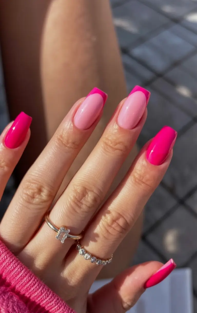 Square Neon Pink French Tips for a Fresh Spring Statement